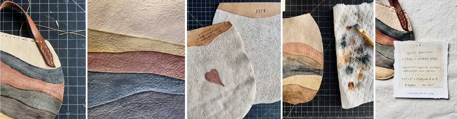 I’ve played with the idea of watercolor on leather for years, but that morning... I finally picked up a brush. The whole start of the collection just spilled out like it had been waiting for a green light… or that perfect space, place and time.